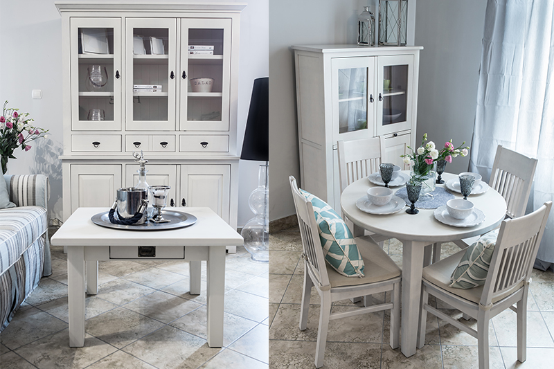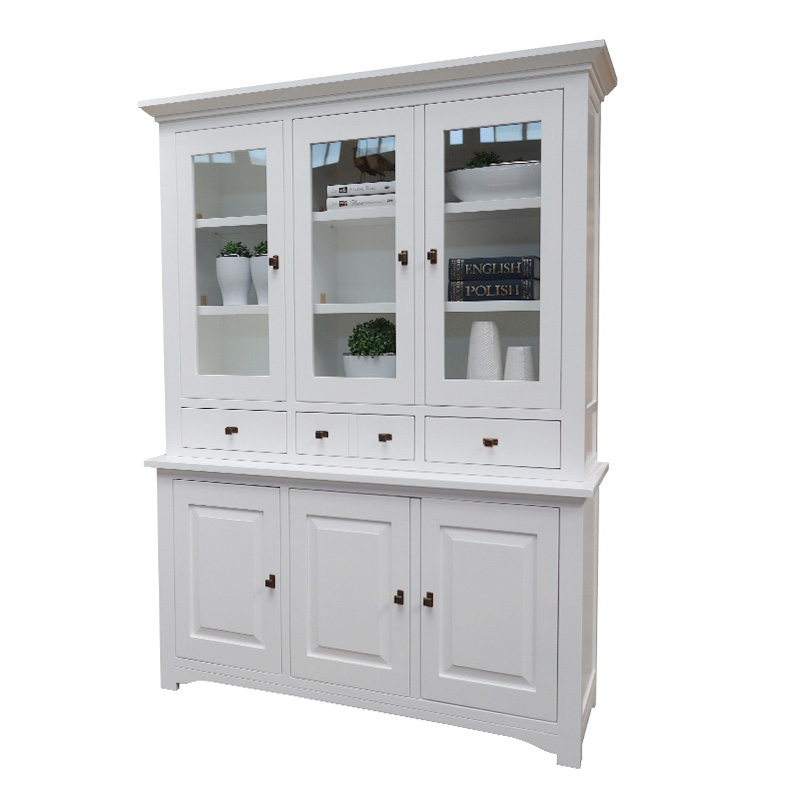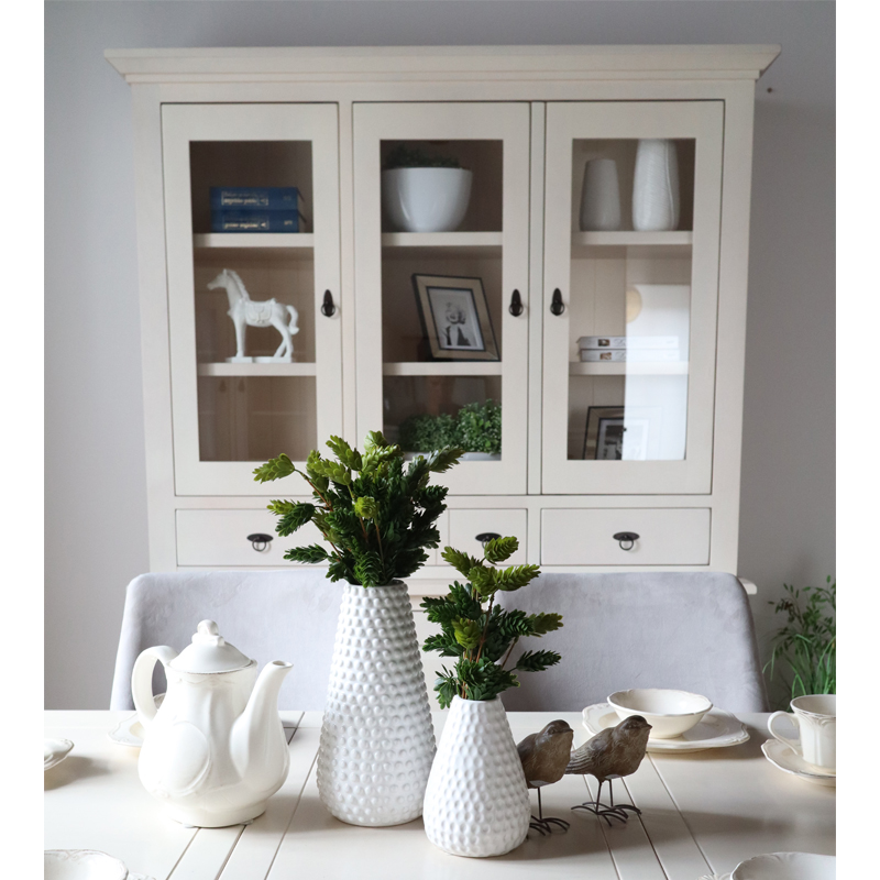 Elegantný dvojdielny kredenc Nordik z masívnej brezy v bielej farbe kombinuje presklenú hornú časť na vystavenie riadu či dekorácií a spodnú skrinku na praktické uloženie vecí. Kvalitné spracovanie zaručujú nadčasový vzhľad aj dlhú životnosť.